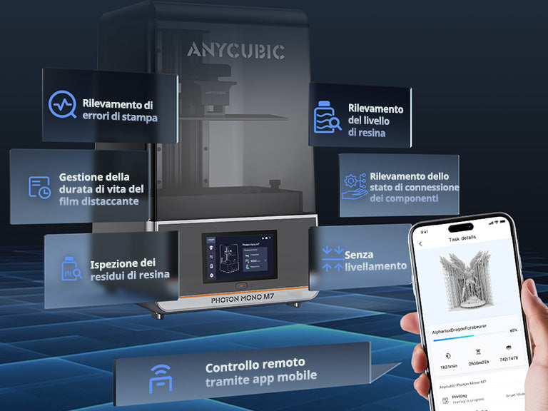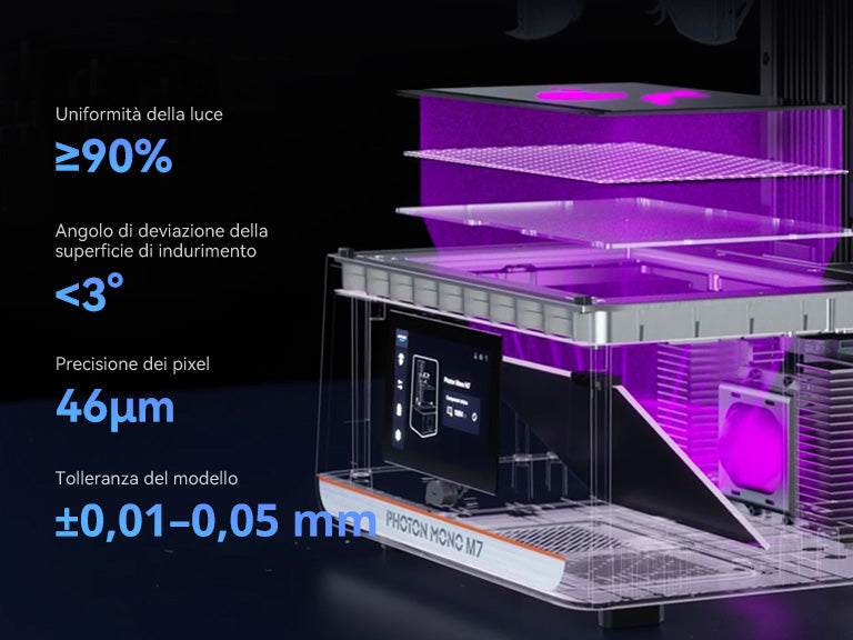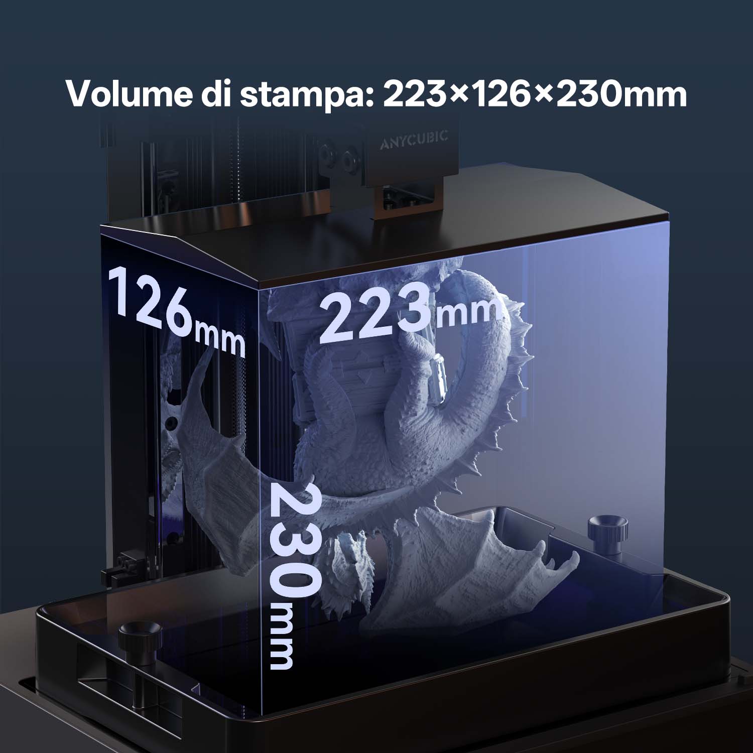 - La Photon Mono M7 offre un volume di costruzione di 223 x 126 x 230 mm, fornendo ampio spazio per la tua creatività.