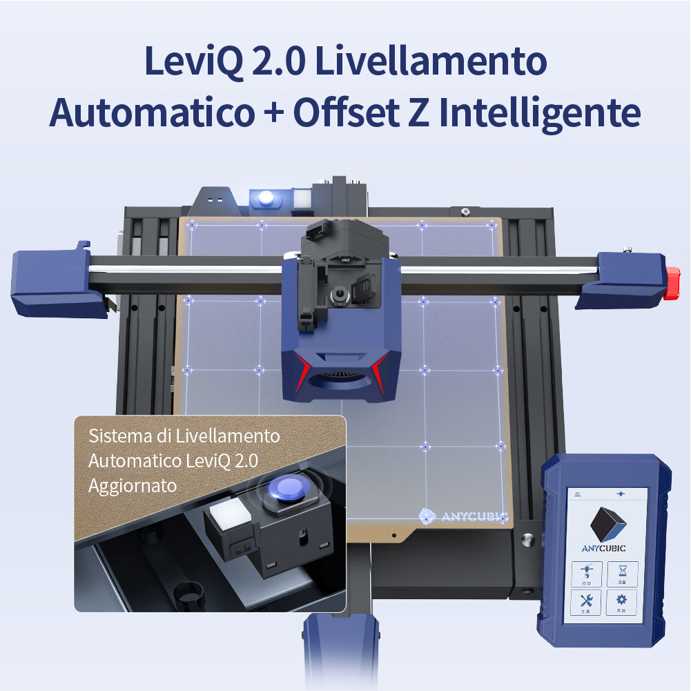 Il nuovissimo sistema di livellamento automatico LeviQ 2.0 aggiornato in combinazione con un sistema modulare su misura realizza un offset intelligente sull'asse Z senza regolazione manuale Z-Offset può essere personalizzato per soddisfare le diverse esigenze di stampa.