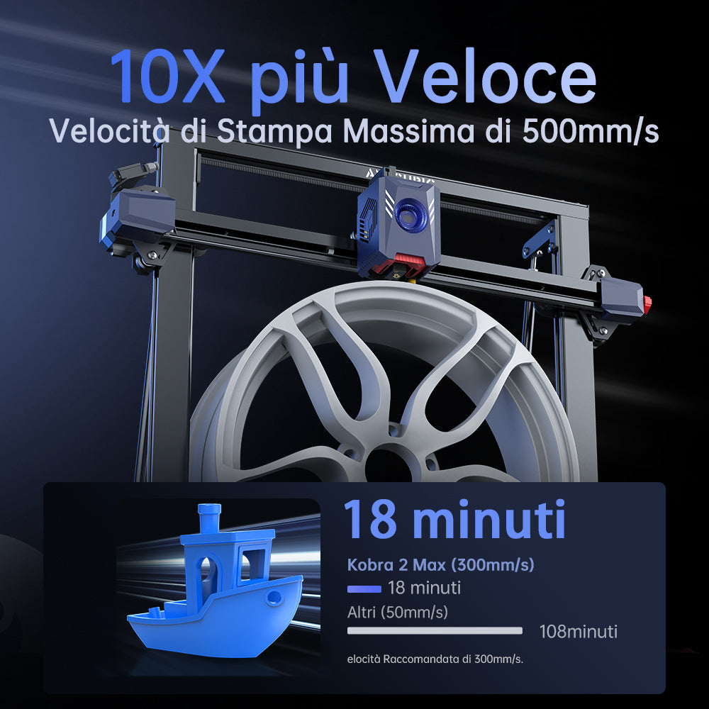 - Stampante 3D 10 volte più veloce: velocità massima 500 mm/s