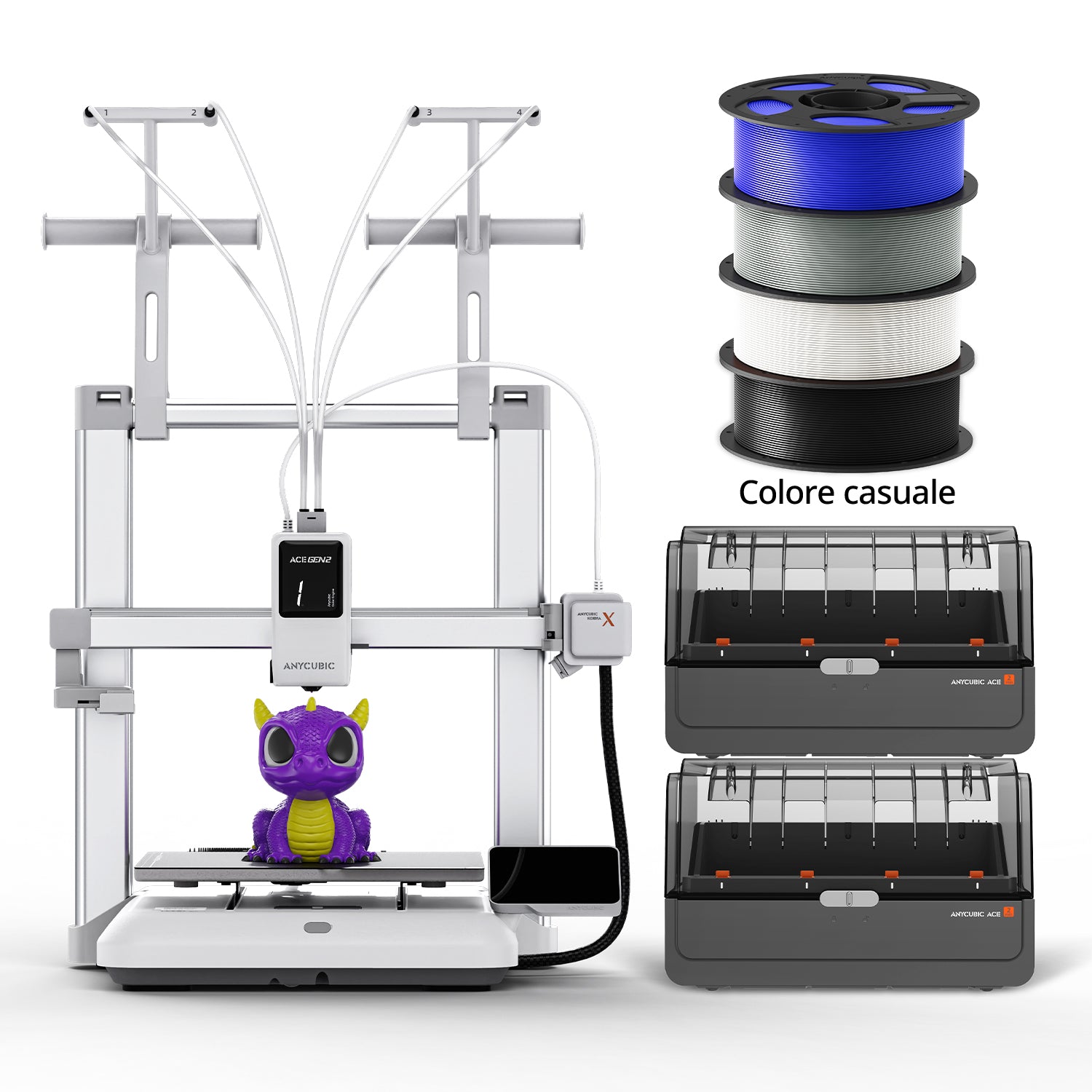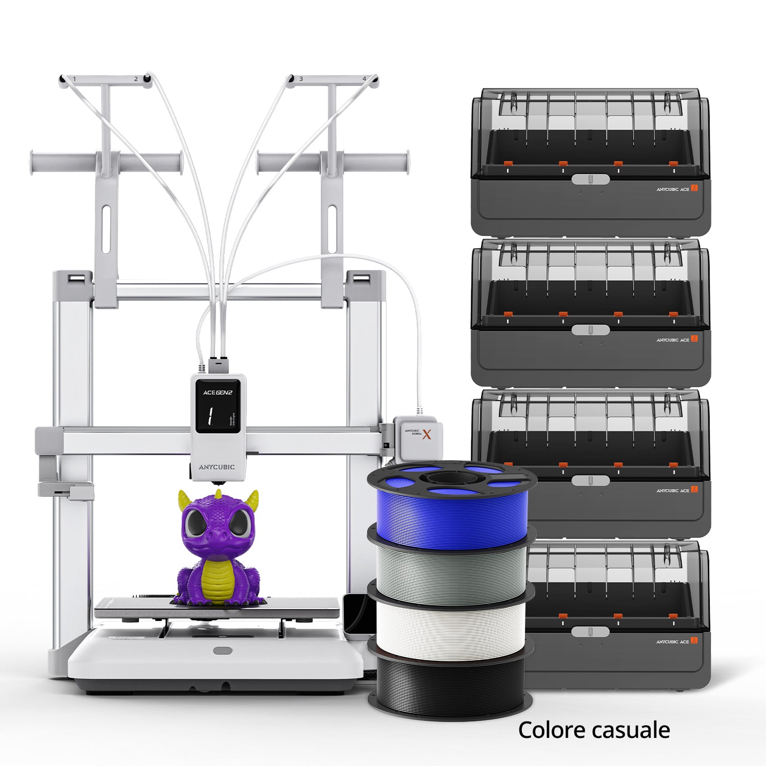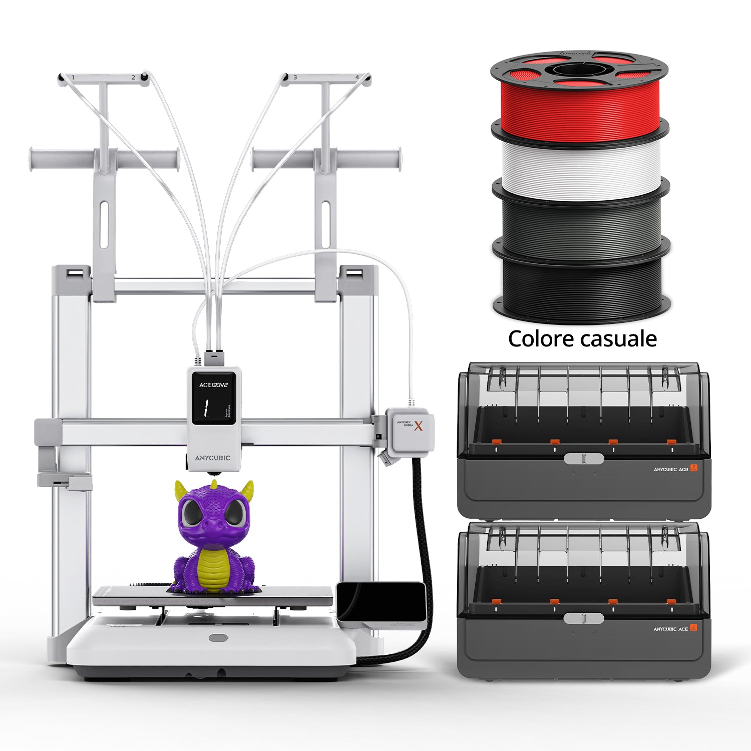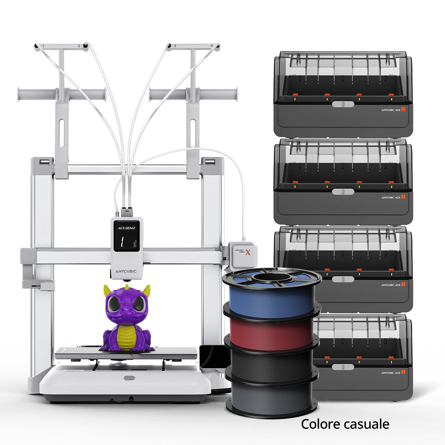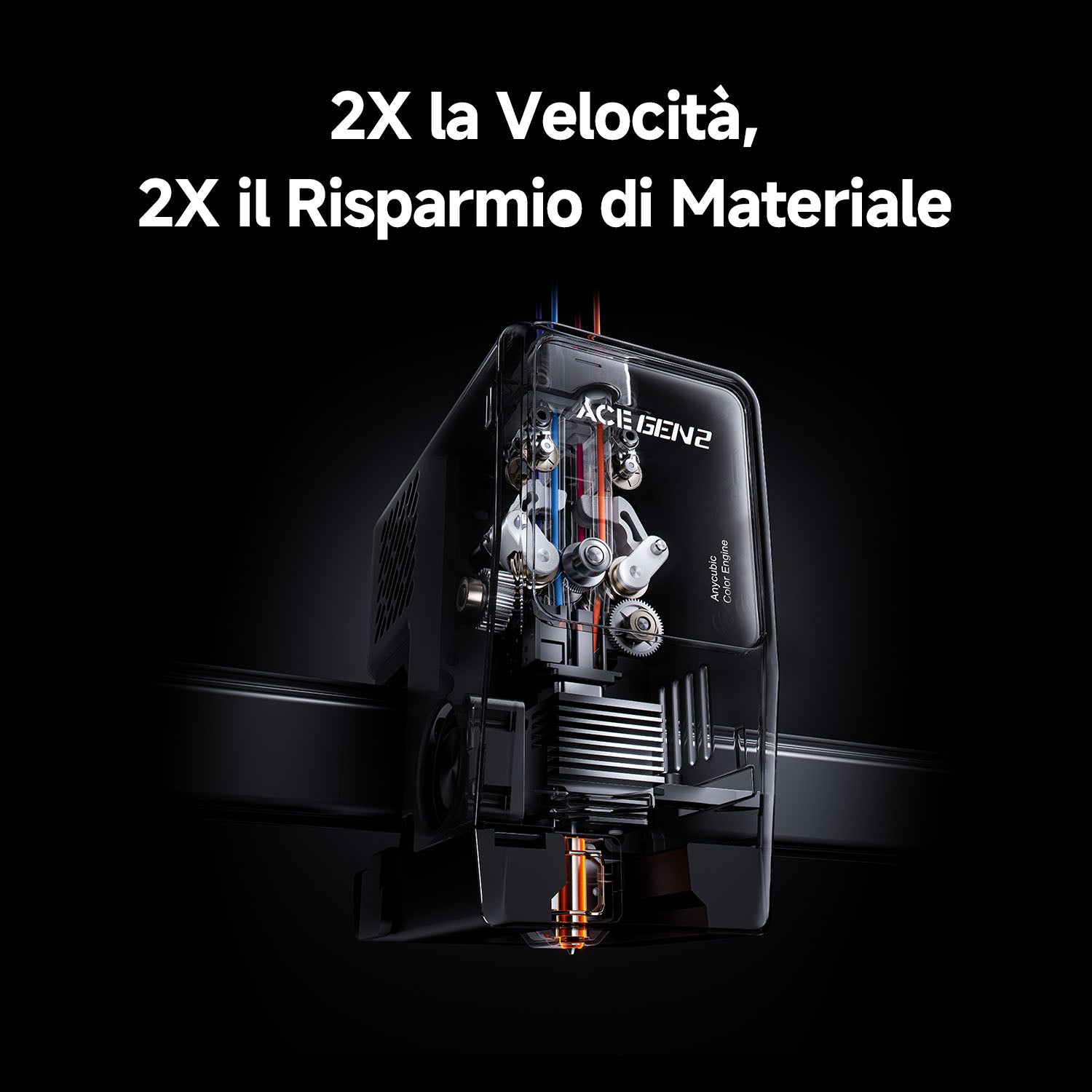 La tecnologia ACE GEN 2 al cuore della Kobra X riduce la lunghezza di spurgo del filamento multicolore di ben l’81,25%. Questo non solo riduce drasticamente i tempi di stampa, ma diminuisce anche gli sprechi di filamento, rendendo ogni bobina più conveniente e redditizia.
