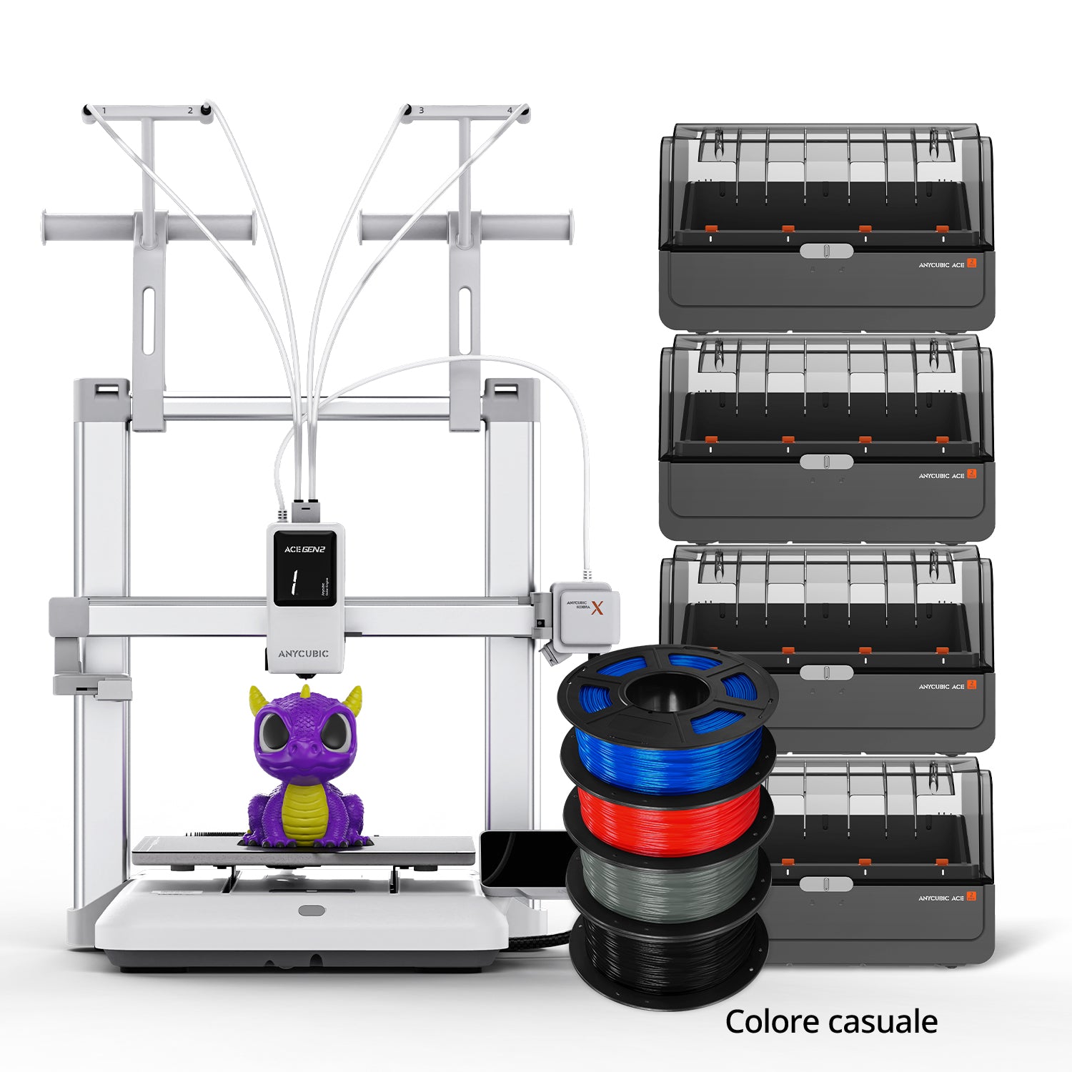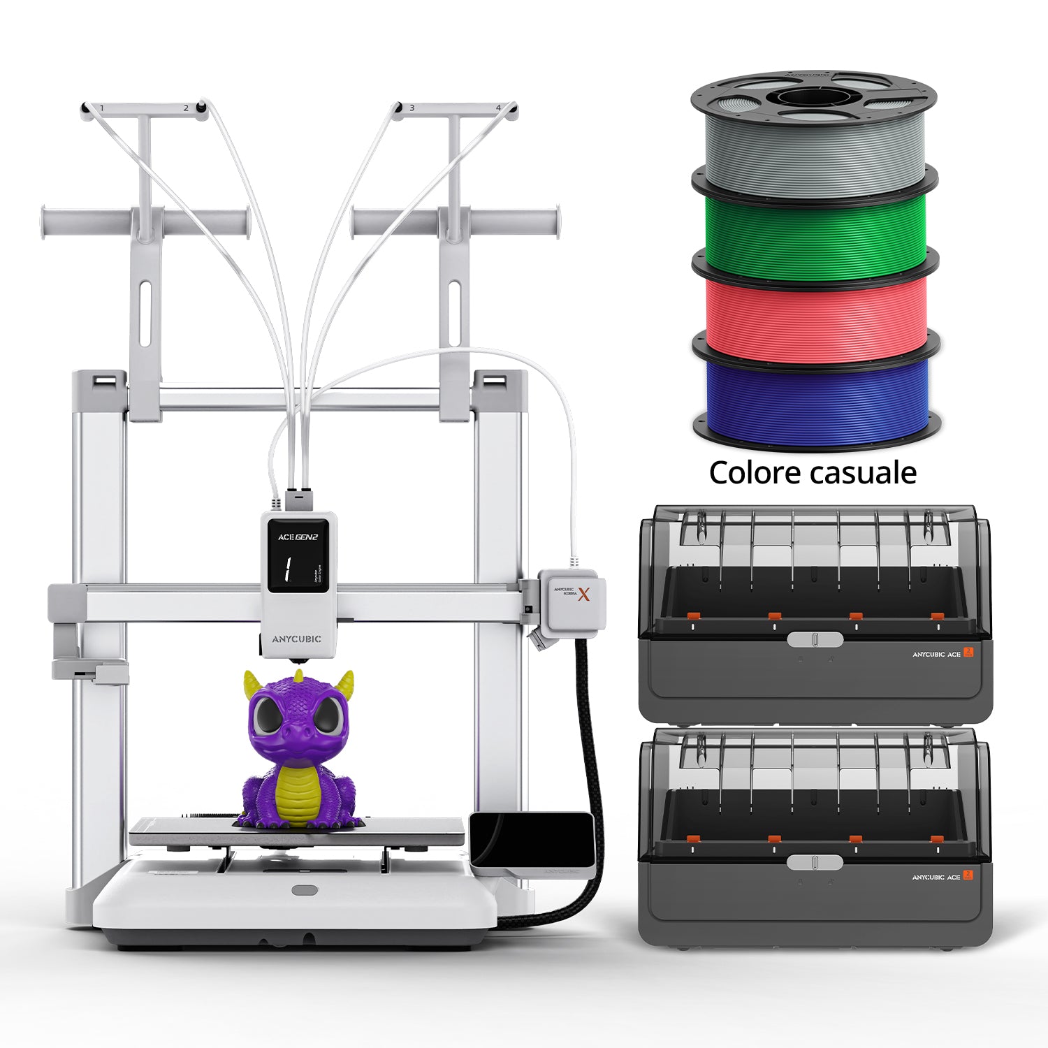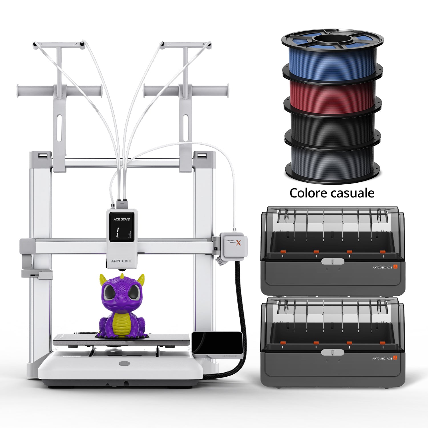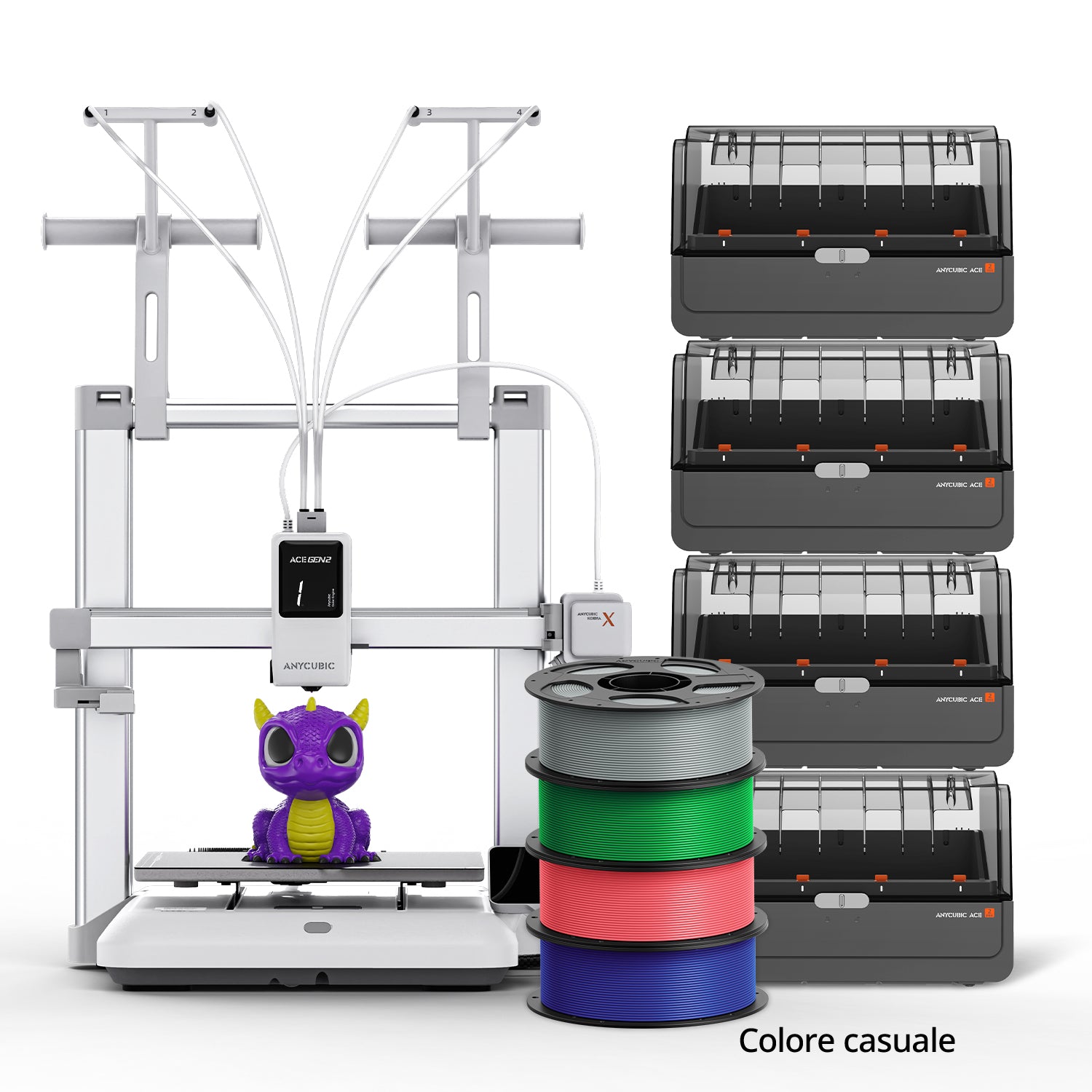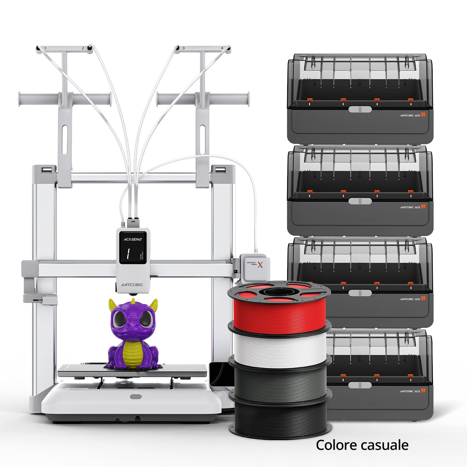 La tecnologia ACE GEN 2 al cuore della Kobra X riduce la lunghezza di spurgo del filamento multicolore di ben l’81,25%. Questo non solo riduce drasticamente i tempi di stampa, ma diminuisce anche gli sprechi di filamento, rendendo ogni bobina più conveniente e redditizia.