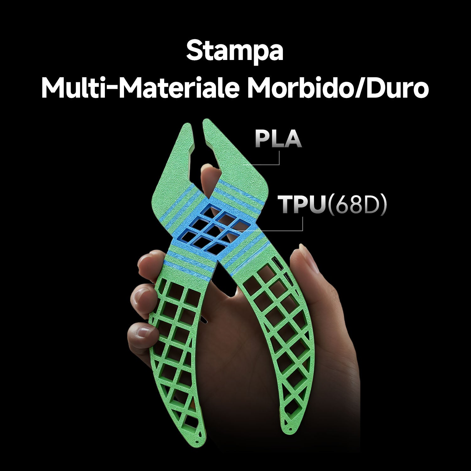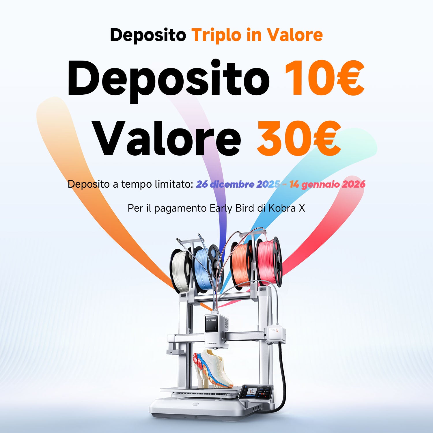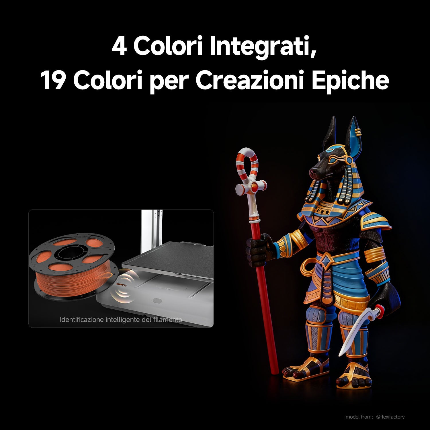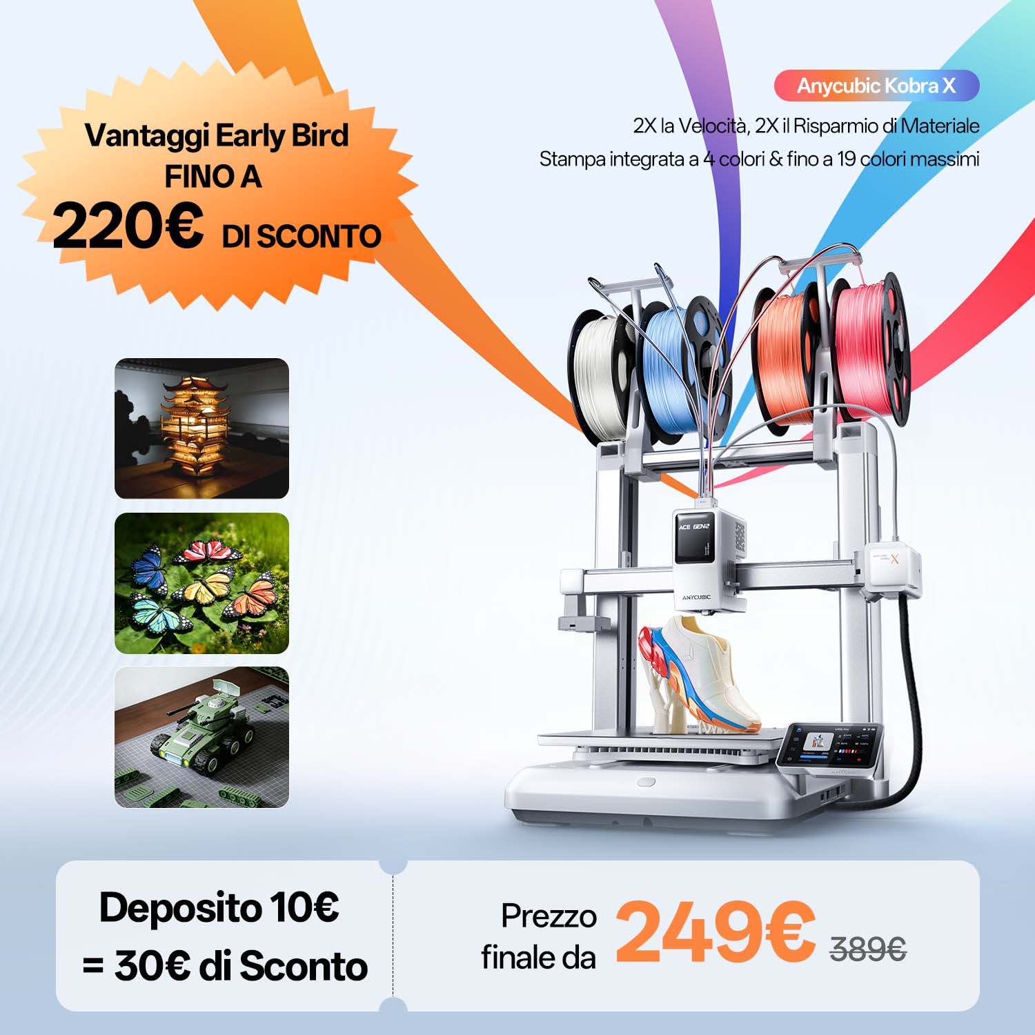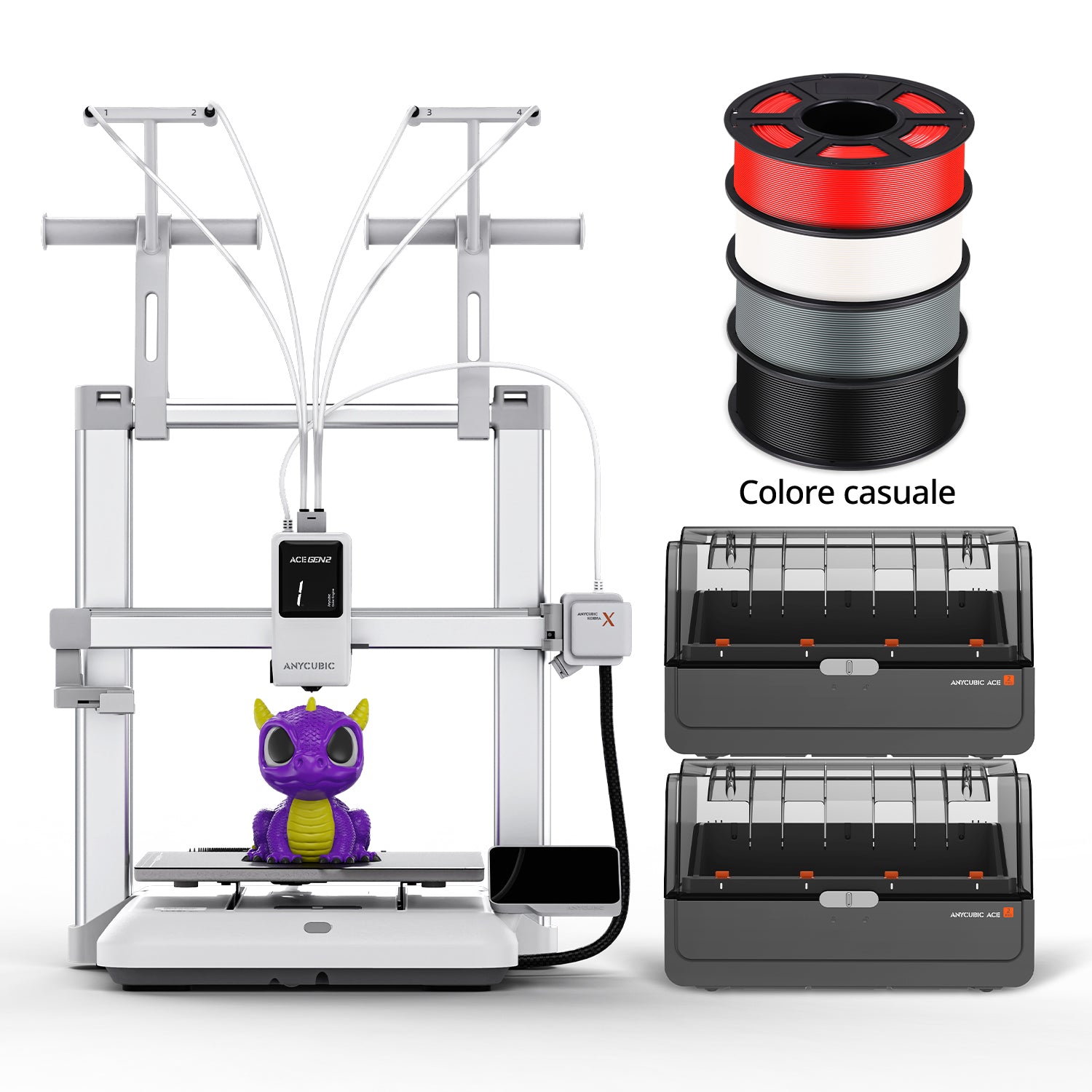 La tecnologia ACE GEN 2 al cuore della Kobra X riduce la lunghezza di spurgo del filamento multicolore di ben l’81,25%. Questo non solo riduce drasticamente i tempi di stampa, ma diminuisce anche gli sprechi di filamento, rendendo ogni bobina più conveniente e redditizia.