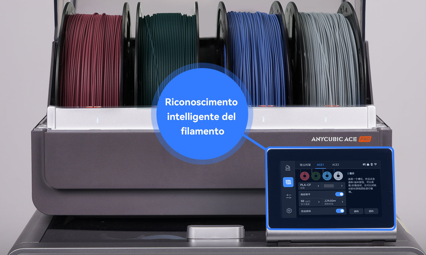 *La funzione di identificazione intelligente richiede una connessione a Internet e l'utilizzo di filamenti a marchio Anycubic compatibili con tale tecnologia.