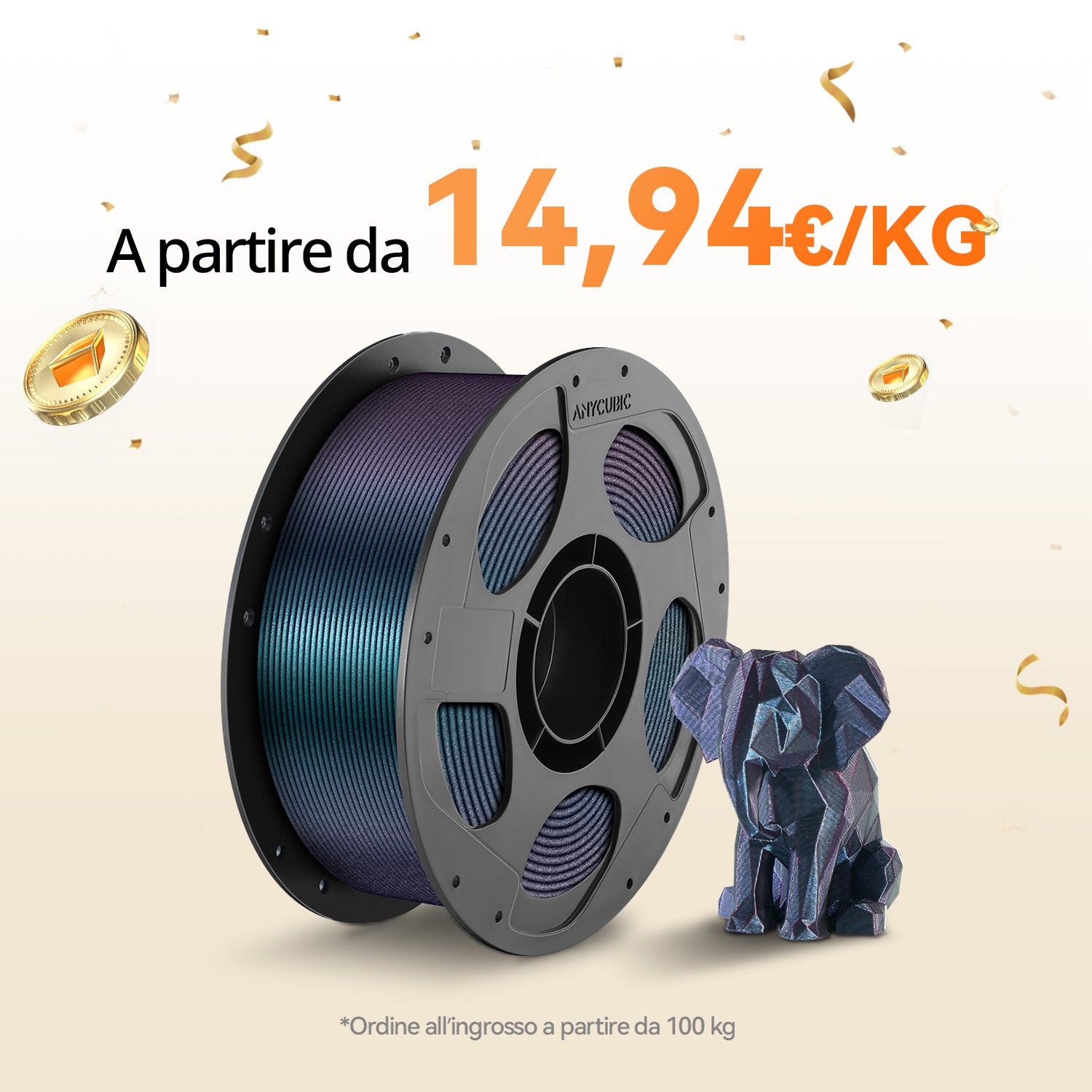 L’Anycubic PLA Galaxy utilizza le impostazioni standard del PLA per un’esperienza plug-and-play adatta ai principianti. Goditi risultati costanti e affidabili dall’inizio alla fine, anche dopo la ricarica del filamento.