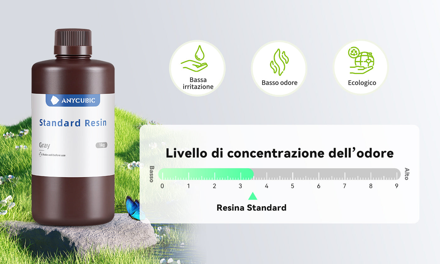 La resina Anycubic presenta una formulazione appositamente studiata a basso odore, garantendo zero irritazioni per un’esperienza di stampa piacevole e confortevole.