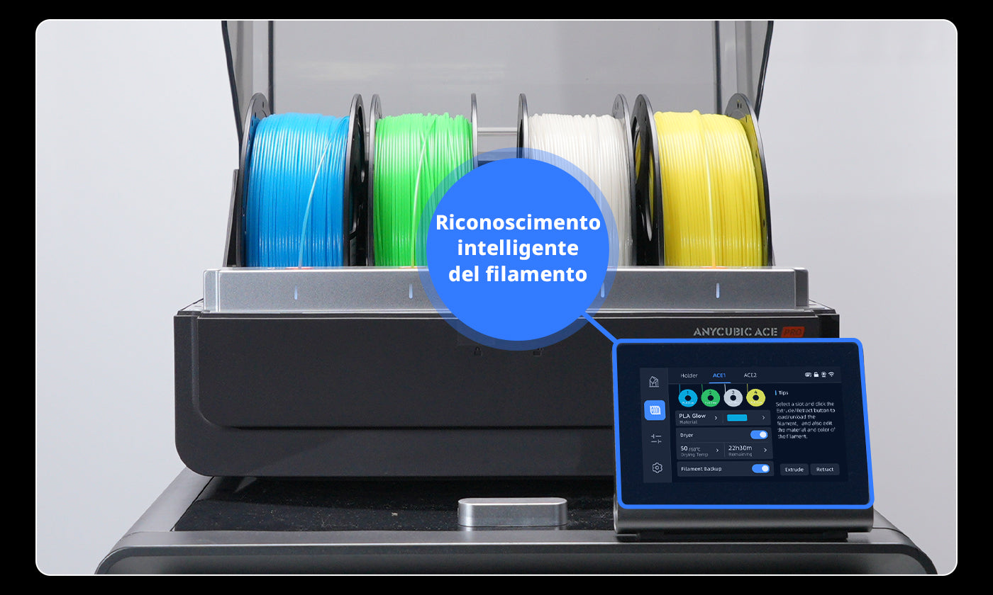 I filamenti sono dotati di chip di identificazione intelligente che si integrano perfettamente con ACE Pro, consentendo il riconoscimento automatico delle informazioni di stampa e migliorando l’esperienza di stampa.