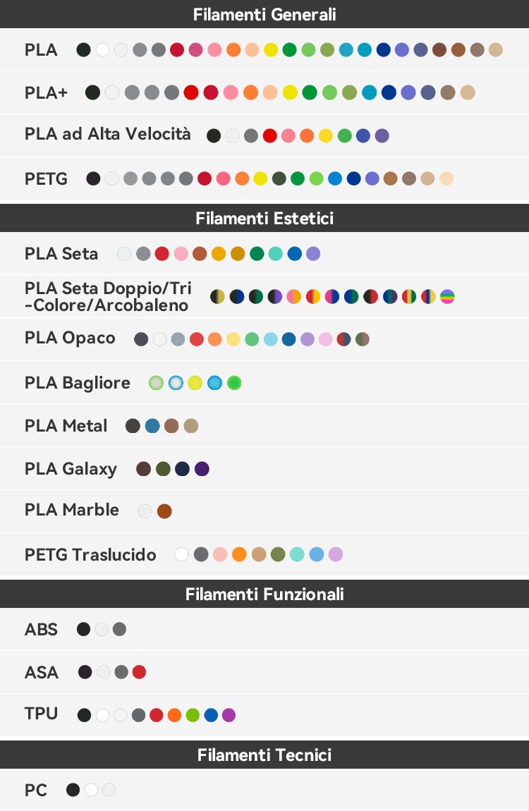 L’Anycubic PLA offre un’ampia gamma di colori, rendendolo perfetto per scopi educativi, design e progetti creativi.