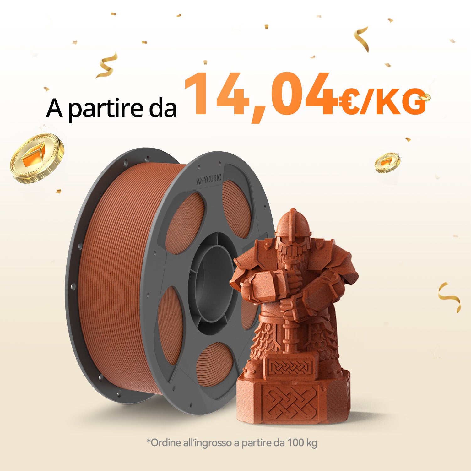 Il PLA Marble di Anycubic è un filamento che riproduce l’aspetto della pietra naturale. La sua composizione include vere particelle di marmo, conferendo alle stampe texture realistiche di marmo e granito.